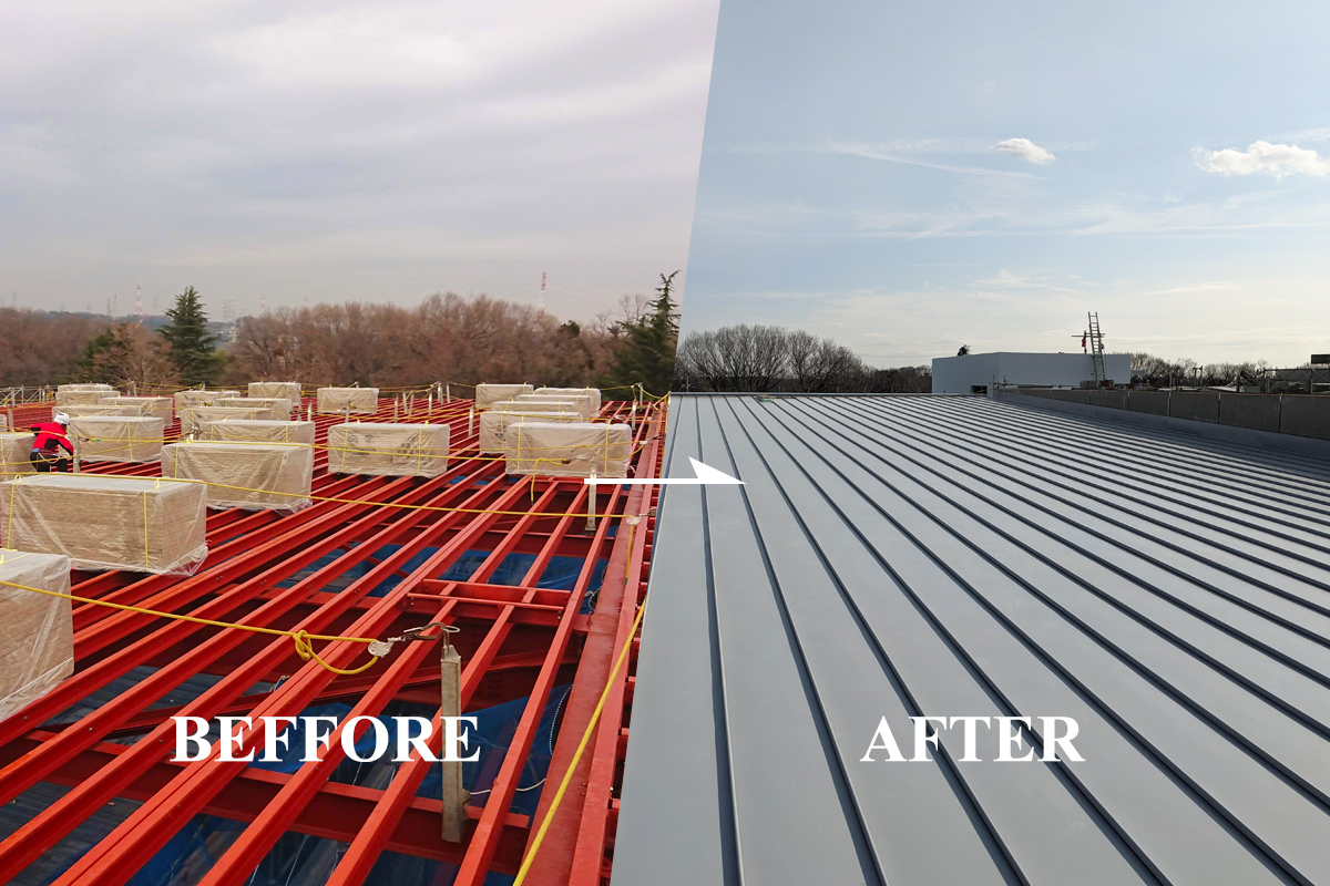 | 主要施工業務 | ・長尺折板 ・ルーフデッキ ・横葺き段角ルーフ ・スレート改修工事 ・各種長尺瓦棒葺 ・各種長尺金属立平葺き ・各種軒樋 竪樋工事 ・元旦サーナルーフ ・その他各種一般屋根 ・金属板外壁貼り工事 ・各種サイディング工事 ・住宅リフォーム工事 ・元旦ビューティ工業株式会社施工指定代理店 |